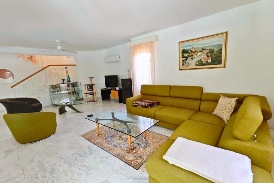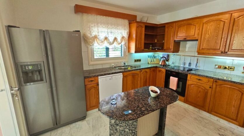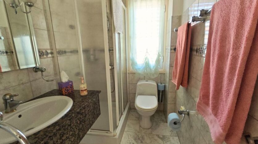 This fantastic villa comes fully furnished and has window shutters, full air conditioning, underfloor heating and central heating throughout. The ground floor offers a spacious and bright area to relax and unwind. There is a generously sized living area, a beautiful dining area and a fully fitted kitchen with Grecian marble, fully fitted appliances and a feature kitchen island. There is also a guest WC on the ground floor.