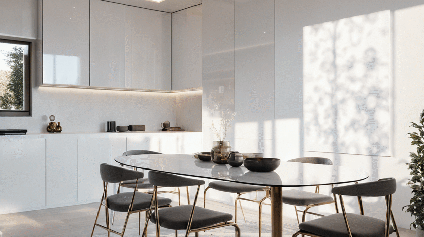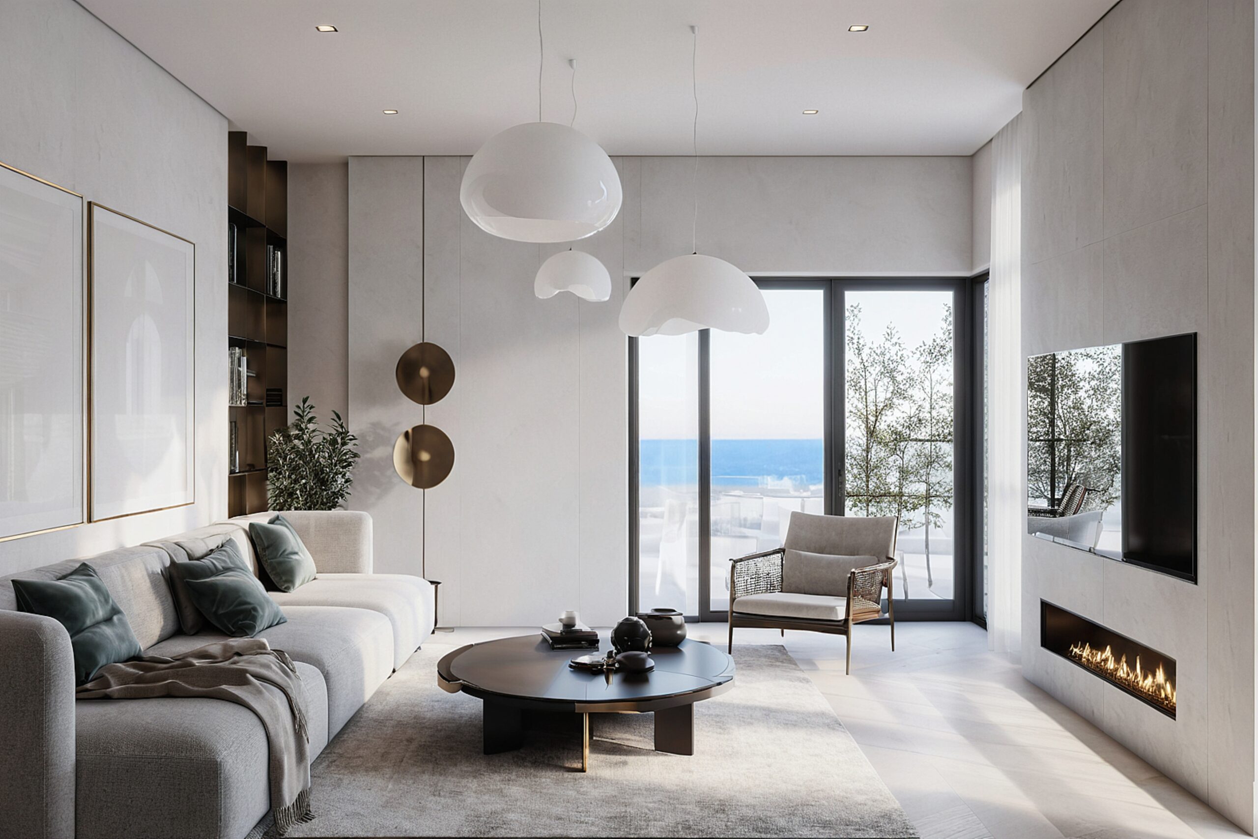 The apartment has been thoughtfully designed with a focus on modern minimalism, incorporating natural materials and meticulous craftsmanship, resulting in a serene and luxurious atmosphere where every detail invites comfort and relaxation.