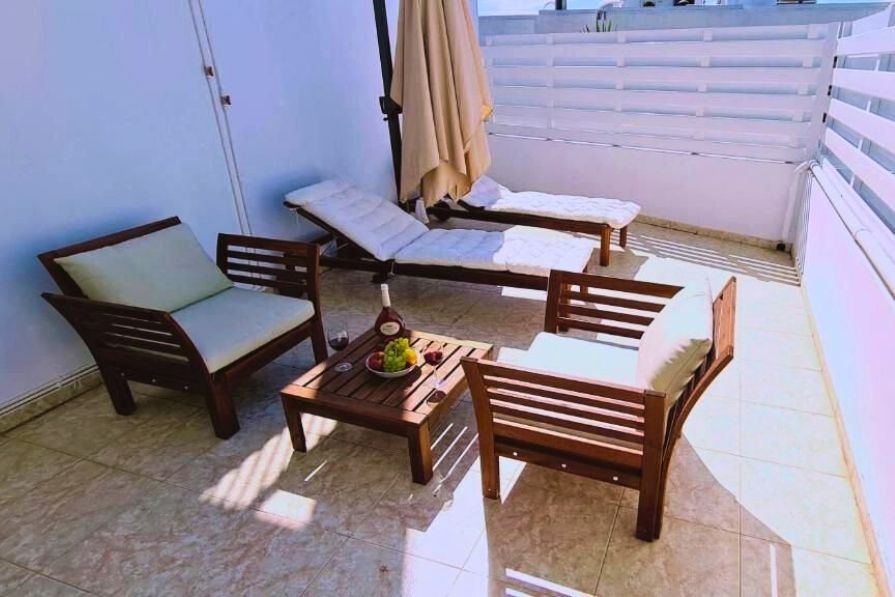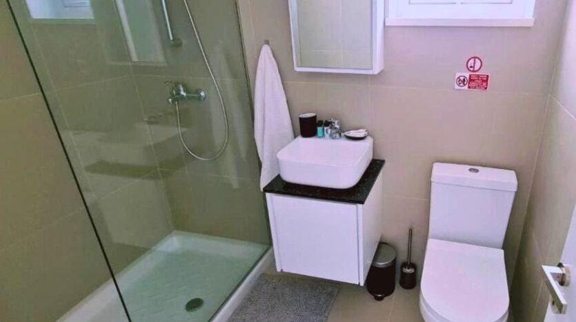 The open plan design of the apartment creates a bright and spacious feel. The modern kitchen is fully equipped and functional and offers a dining space to enjoy meals with your loved ones. There is a double bed and a separate bathroom with walk-in shower. There is also a spacious balcony with ample space for sunbathing and al fresco dining.
