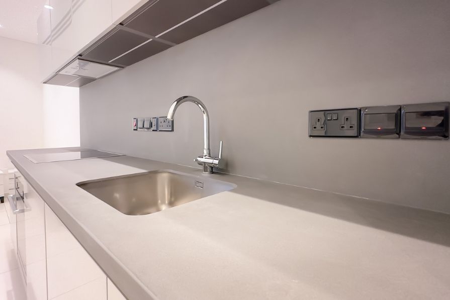 The modern kitchen boasts a feature kitchen island, creating a wonderful place to enjoy meals with your loved ones. The living area looks out to the private garden and pool area through floor to ceiling glass sliding doors. There is also a guest WC on the ground floor.