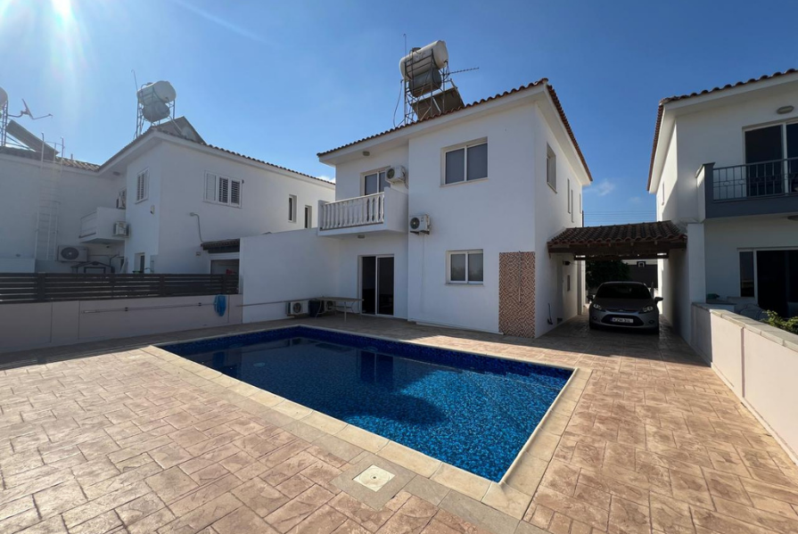 Upstairs, the property features three generously sized bedrooms, including a master with an en-suite shower, along with a main bathroom with a bathtub. Two of the bedrooms enjoy private balconies with lovely views across Sotira.